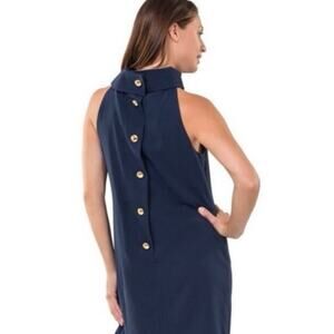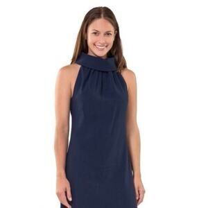 Sail To Sable Size M Womens Cowl Neck Button Back Shift Dress Navy Blue