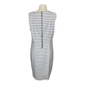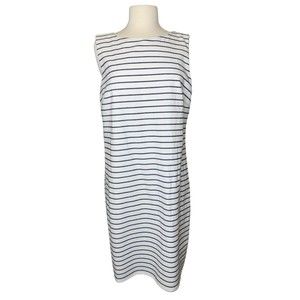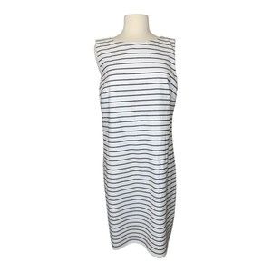 Sail To Sable White Navy Striped Sleeveless Stretch Dress Large Zipper Back