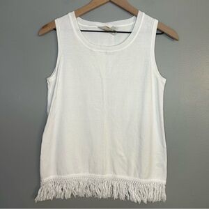 Sail To Sable White Sleeveless Sweater with Fringe Trim, Size XS.
