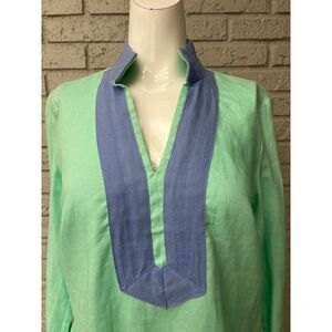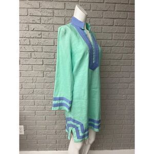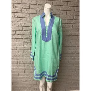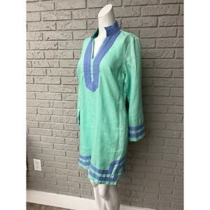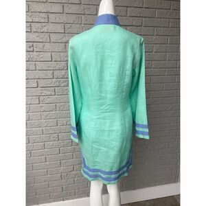 Sail To Sable Women Preppy Blue Mint Green Linen Tunic Dress Size S