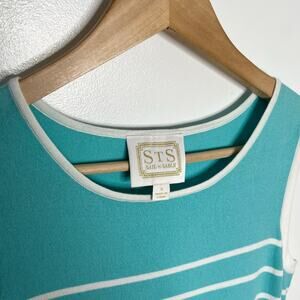 Sail To Sable Women Sleeveless Knit Shift Dress S Teal Stripe Coastal Nautical