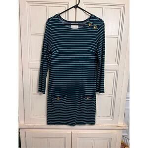Sail To Sable size small striped dress in great condition. Gold button detail on one shoulder and on the front pockets. Stretchy knit material. Measures 17 1/2” from armpit armpit. 17” across the waist and it is 36” long.