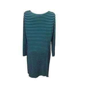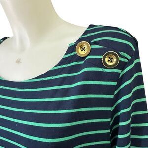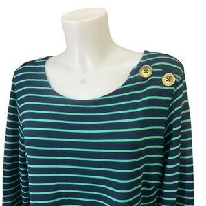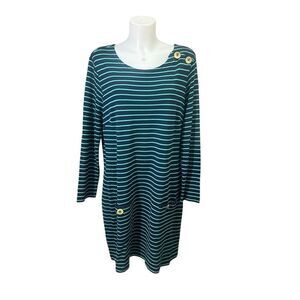 Sail To Sable Long Sleeve Striped Green Navy Tunic Dress XL New Gold Buttons