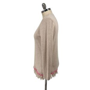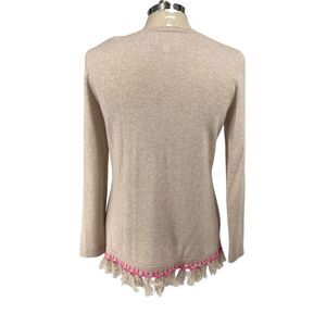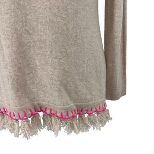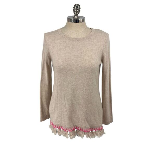 Sail To Sable Sweater Women M Tan Fringe Hem Pullover Soft Cashmere Preppy