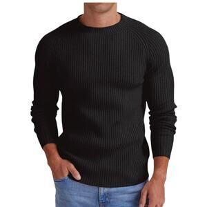 Black crew neck pullover sweater with long sleeves
