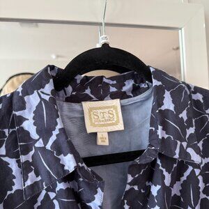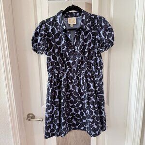 Sail to Sable Autumn Leaf Print Puff Sleeve Shirt Dress - Hydrangea/Navy Size L