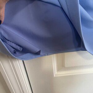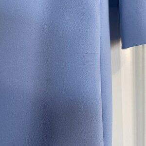 This is a ladies Sail to Sable, soft blue dress. Dress zips up the back, is fully lined and has a double ruffle, 3/4 belled sleeve. There is the smallest of thread pulls on the front of the dress, see picture 6. Otherwise the dress is in excellent condition, only worn once.