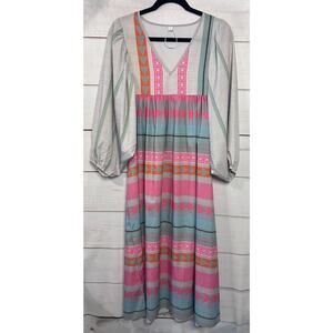 Sail to Sable Dress Size Large White with Blue Stripes Pink Tassels