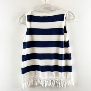 Sail to Sable Hydna Fringe Trim Striped Sweater Tank Top White Blue XS