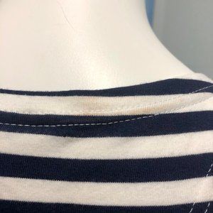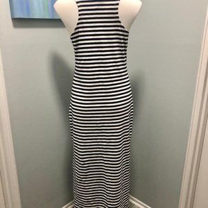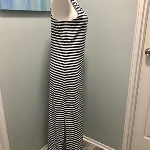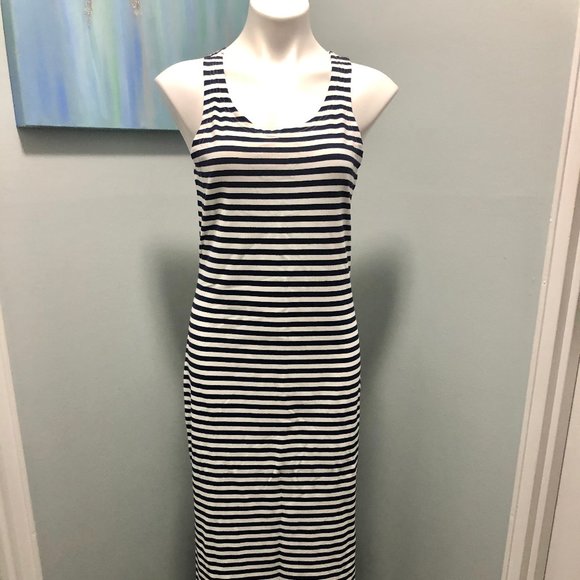 NWOT blue and white striped maxi dress. Please view photos there is a small makeup mark on the back neck.