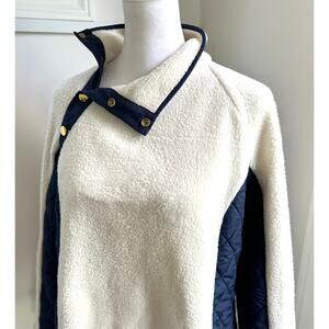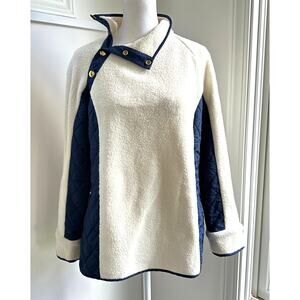 Sail to Sable Navy Blue Quilted Fleece Sherpa Pullover Small Side Button Sweater