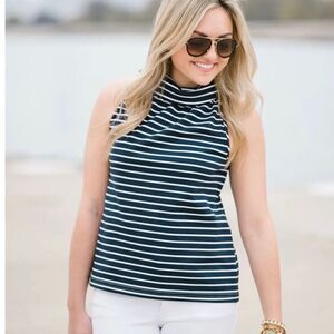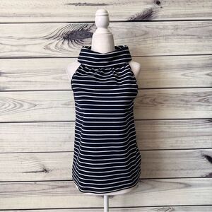 Sail to Sable Navy & White Cowl Neck Button Back Sleeveless Top