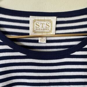 Sail to Sable Navy and White Striped Bell Sleeve Sweater Dress M