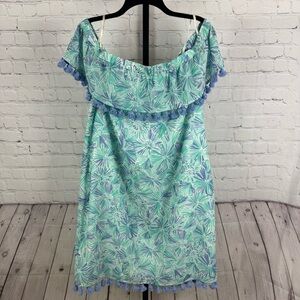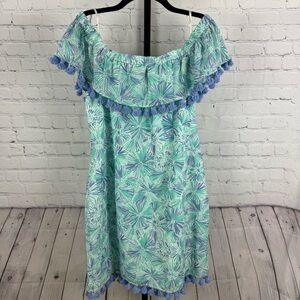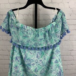Sail to Sable Off the Shoulder Blue Floral Tassel Shift Dress Size XL