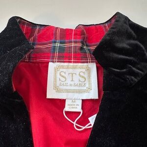 Sail to Sable Red Tartan Plaid & Velvet Collar Tunic Blouse | Size Medium