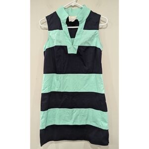 Excellent pre-owned condition. Sail to Sable STS Green and Blue Striped Sleeveless Dress. Size zip. Size small