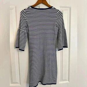 Sail to Sable STS Navy and White Striped Bell Sleeve Sweater Dress XS