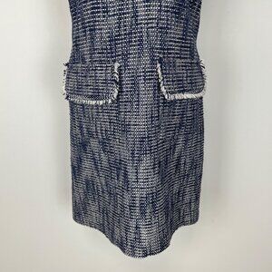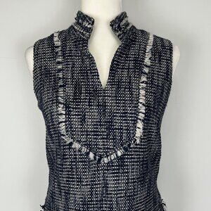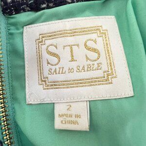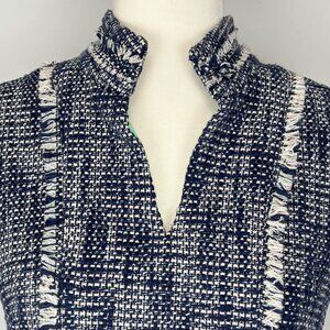 Sail to Sable STS Womens Tweed Fringe Dress Blue White Short Sleeve size 2