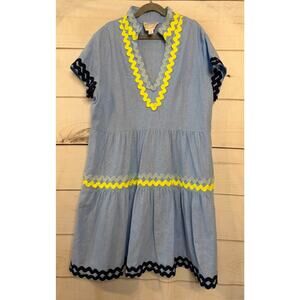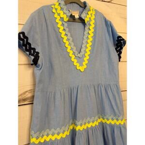 Sail to Sable Size MED Dress Light Blue With Ric Rac Trim Short Sleeves