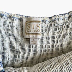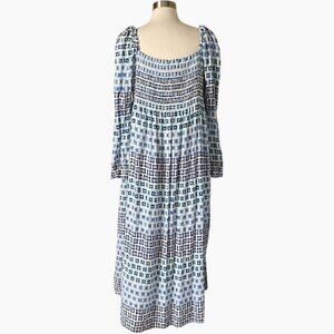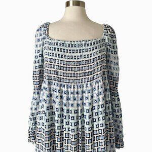 Sail to Sable Square Neck Smocked Dress XL Blue White Geometric Print