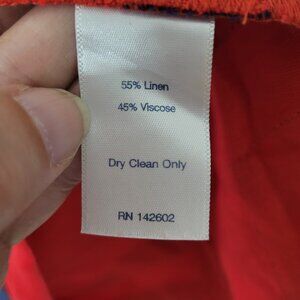 55% linen, 45% viscose - breathable and lightweight fabric, dry clean only