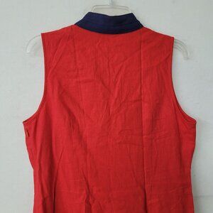 Sail to Sable Tunic Dress Womens Large Red Blue Sleeveless Linen Blend Nautical