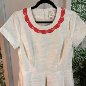 Sail to Sable White Basketweave Flirty Dress with Shell Lace Size 8 NWT