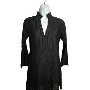 Sail to Sable size 0 XS black swiss dot tunic dress long sleeves cotton voile