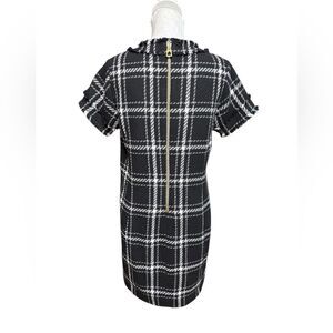 Sail to Sable Tweed Shift Dress Black Short Sleeve Size 8 Wool Blend Plaid