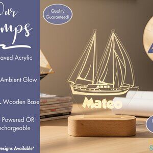 Sailboat LED Night Light | Personalized Boat Gift for Kids, Teens & Dads