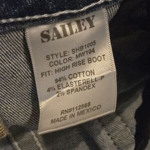 The Sailey Jeans in size 32 are a high rise boot cut with a stretchy design, perfect for a hippie cowgirl look. Made from a blend of Elasterell, Spandex, and Cotton, these jeans are both stylish and comfortable. The blue color adds a trendy touch to the overall aesthetic, while the Mexican craftsmanship adds a unique flair. Ideal for women who embrace a laid-back, yet fashionable style, these Sailey Jeans are a must-have addition to any wardrobe.