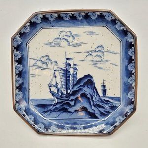 Sailing Boats Vintage Andrea By Sadek Cobalt Blue & White 7.5 square Japan Dish