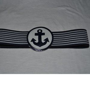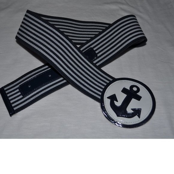 Brand new beautiful Sailor Belt Boat Anchor Logo Retro Vintage navy blue White striped MEDIUM SIZE Waist Length SAMALL 28-32 ..MEDIUM 30-35 LARGE 32-38 inches Wide 2 inches elegant and classicc casual and fun, is the perfect accessory stretch and good quality SIZES AVAILABLE SMALL, MEDIUM, LARGE.. 2 belts X $15 YOU CAN ORDER 2 OF THE SAME COLOR OR ONE OF EACH COLOR .