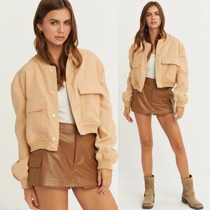 Sailor Cropped Utility Bomber Jacket | Women's Fall Fashion | Tan Neutral