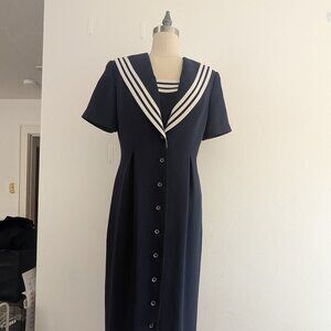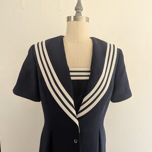 Sailor Dress Retro 90s Fashion Navy Blue Nautical Shirt Dress Sz 10