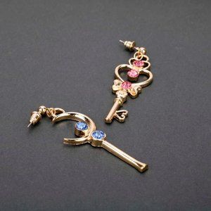 Sailor Moon Anime Inspired Gold Key Wand Earrings