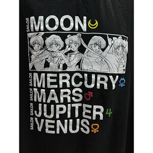 Sailor Moon Anime T-Shirt XL Black Mercury Mars Jupiter Venus Graphic Tee Toei