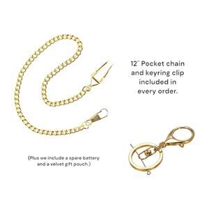 Watch measures approximately 1.8 inches wide. Quartz movement, battery-operated, with a new battery pre-installed—no winding required.