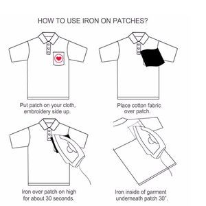 1. Put the patch "hot melt glue" side on the clothes (glue can not be torn off) , Preheat the iron, the front side of patch ironing about 10 to 20 seconds, Make the patch a fixed position.
