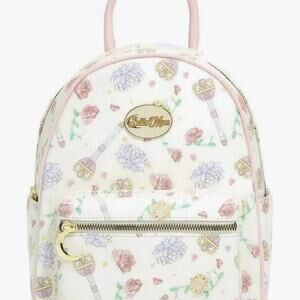 This adorable mini backpack features a Sailor Moon Trio Cosmic Heart Compact design in a light pink color. It's perfect for any Sailor Moon fan! Don't miss out on this unique and stylish backpack! It's in great condition and ready to add some magic to your wardrobe. Grab it now before it's gone!