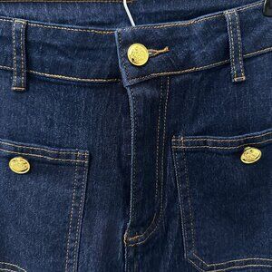 Sailor Slim Wide Leg Jeans Crest Gold Button Dark Wash Blue Denim Women XS/26
