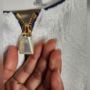 Sleeveless Construction with Navy Piping