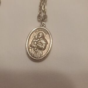 Saint Anthony Medal Silver Tone 1 Inch Pendant With A 22 Inch Silver Tone Chain