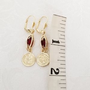 14K Gold Plated Red Stone Saint Benedict Women's Earrings