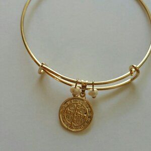 Saint Benedict medal and freshwater pearls rire adjustable bracelet bangle