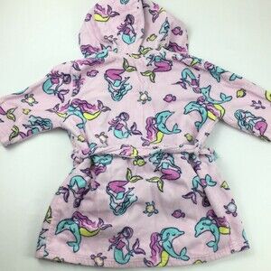Saint Eve Girls Multicolor Mermaid Open Front Belted Hooded Swim Bathrobe Sz XXS