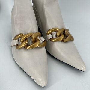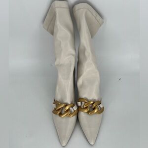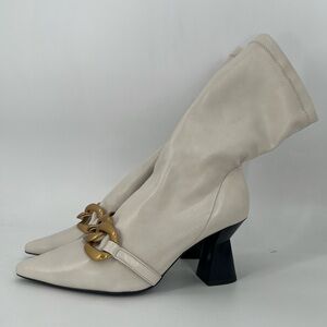 Saint G Faux Napa Slouchy Chunky Chain Link Detail Pointed Toe Heeled Calf Boots