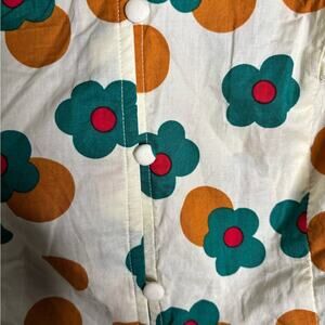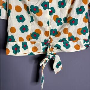 Saint Geraldine Tan and Green Floral Print Fabric Button Front Ruffle Detail Sm