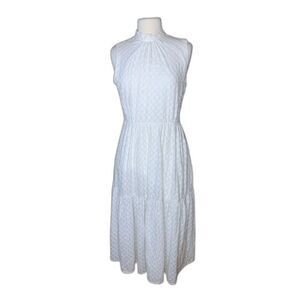 Saint Geraldine White Lace Midi Dress Women’s Size Medium 100% Cotton Sleeveless Eyelet Tiered Summer