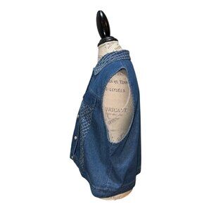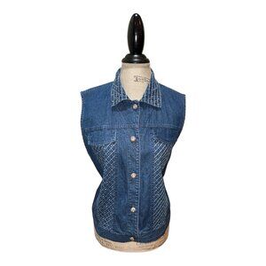 Saint Germain Blue Sparkle Lightweight Vintage Denim Vest w Sparkly Buttons L